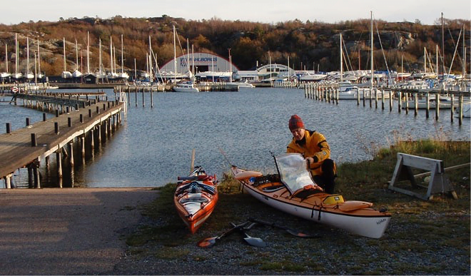 För att underlätta transport av kajakerna i och ur vattnet vid flytbryggan finns det kärror att låna. Det är dock bara ett tiotal meter från kajakhallen, eller parkeringen, till vattnet.